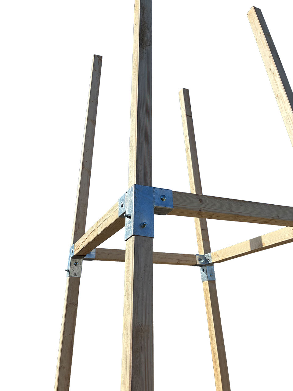 Ganz neu im Sortiment: Leicht zusammensteckbare, schnelle, sichere Montage der einzelnen Bauteile. Die vier Kanzelecken bestehen jeweils aus einer feuerverzinkten Stahlrohrkonstruktion mit eingearbeiteten Vierkantdurchbrüchen und den entsprechenden Befestigungsschrauben. Ein Satz bestehend aus: vier Kanzelecken und 16 Verbindungsschrauben inkl. Unterlegscheiben und Muttern.